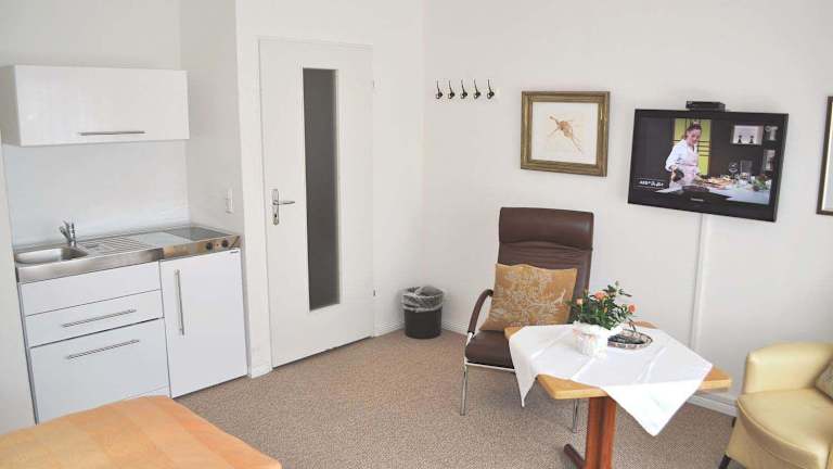Die Ferienwohnung verfügt über Satelliten-Flachbild-TV und eine Küchenzeile, die mit einem Kühlschrank sowie einem Geschirrspüler ausgestattet ist. Für zusätzlichen Komfort sind Handtücher und Bettwäsche gegen Aufpreis erhältlich.