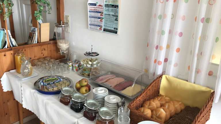 In der Unterkunft wird ein Frühstück angeboten, das entweder als Buffet oder vegetarisch serviert wird. Die Verpflegung umfasst frische und regionale Produkte.