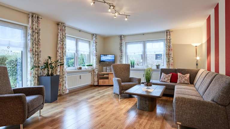 Das Ferienhaus Zenz - Ferienwohnungen liegt nur 4,8 km von der imposanten Reichsburg Cochem entfernt. Diese zentrale Lage bietet Ihnen die Möglichkeit, die malerische Stadt Cochem und ihre Umgebung bequem zu erkunden. In der Nähe finden Sie auch zahlreiche Wander- und Radwege, die zu weiteren Sehenswürdigkeiten und Naturschönheiten führen. Das Schloss Eltz ist nur 31 km entfernt und das Kloster Maria Laach erreichen Sie nach 43 km. Der Flughafen Frankfurt-Hahn ist etwa 33 km entfernt.