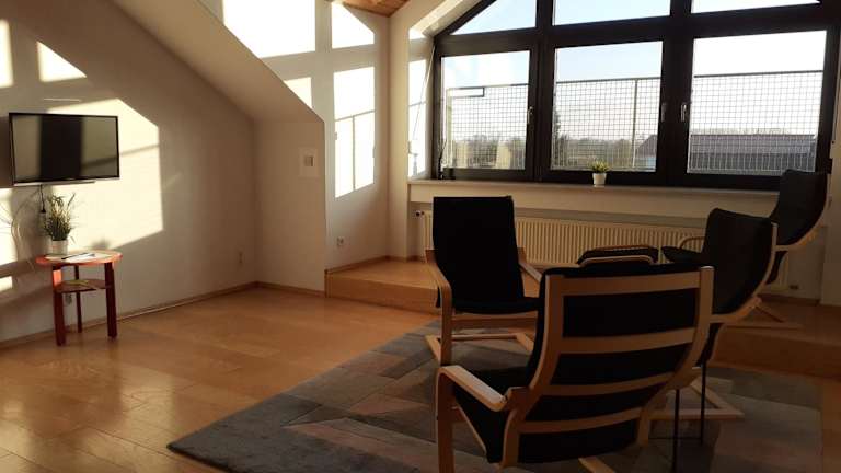 Die Gästewohnung in Parkstetten bei Straubing befindet sich in Parkstetten, nur 44 km vom imposanten Regensburger Dom entfernt. Die Lage bietet Ruhe und ist ideal für einen entspannten Aufenthalt. Der Regensburger Hauptbahnhof ist 45 km entfernt und der Bahnhof Cham ist 40 km entfernt. In der Umgebung gibt es viele schöne Orte zu entdecken, wie die beeindruckende Walhalla und das malerische Schloss Thurn und Taxis. Der Flughafen München liegt etwa 107 km entfernt.