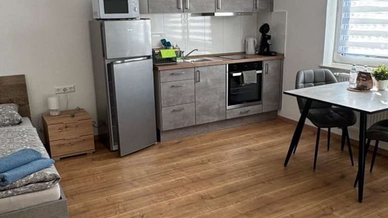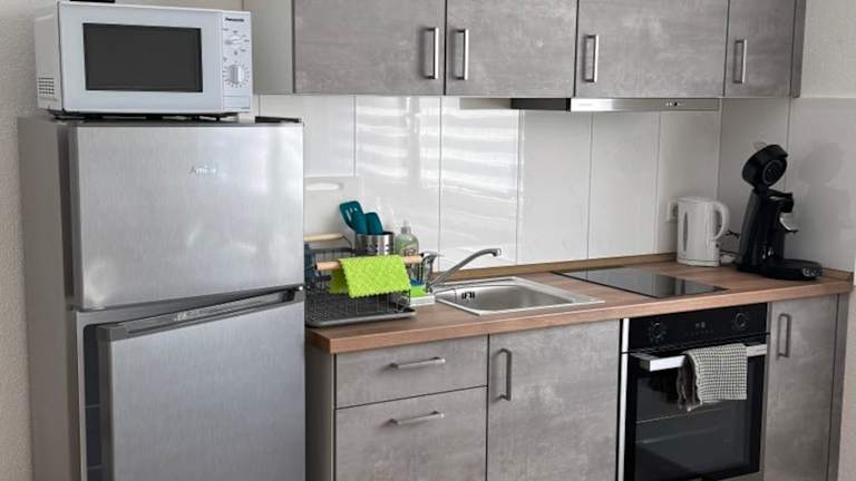 Die Ferienwohnung umfasst ein Schlafzimmer sowie eine Küche, die mit einem Kühlschrank, einem Ofen und einer Kaffeemaschine ausgestattet ist. Handtücher und Bettwäsche werden zur Verfügung gestellt.