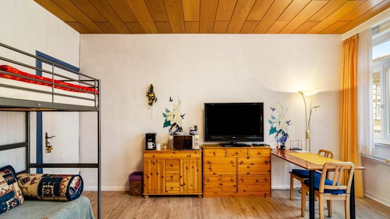 Das Gästezimmer für 3 Personen bietet Übernachtungsmöglichkeiten für bis zu drei Personen. Die Unterkunft beinhaltet Annehmlichkeiten wie kostenfreies WLAN und einen Fernseher. Das Ferienhaus verfügt über ein Schlafzimmer und ein Badezimmer.