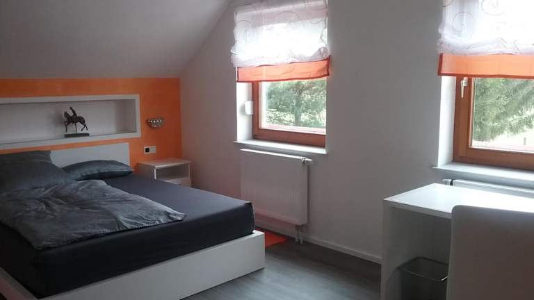 Die Unterkunft Gästezimmer Heßdorf befindet sich in Heßdorf, 35 km vom Hauptbahnhof Nürnberg und 36 km vom Bamberger Dom entfernt. Der nächstgelegene Flughafen, der Flughafen Nürnberg, ist 24 km entfernt. In der Nähe können Gäste Wanderungen unternehmen und den Garten der Unterkunft nutzen.
