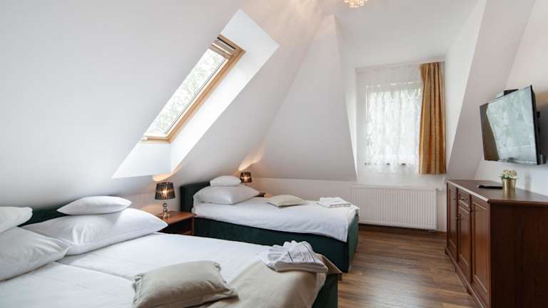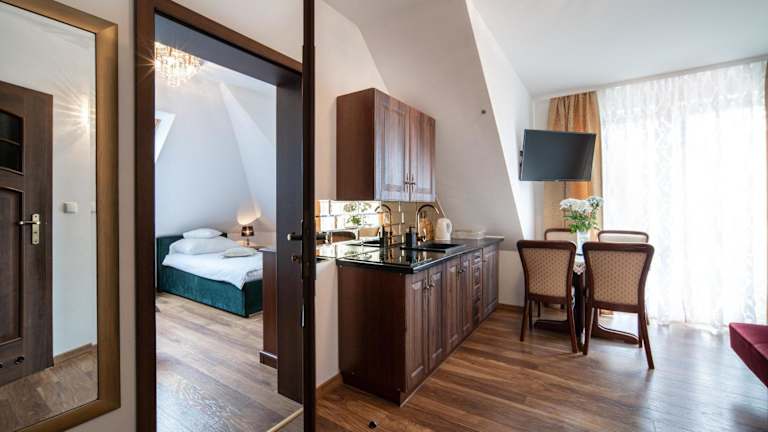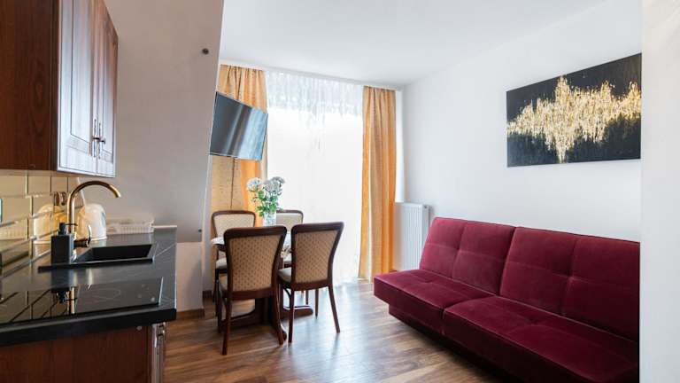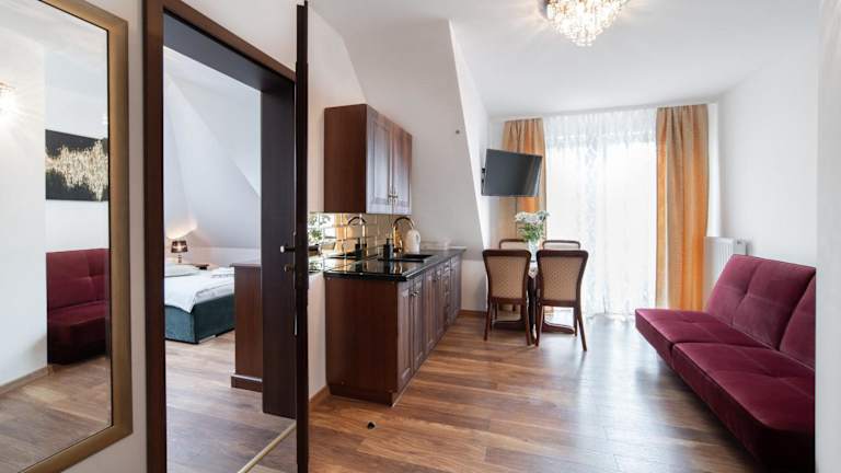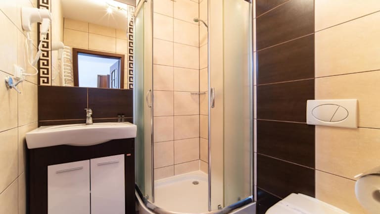 Die Unterkunft im Pałacyk verfügt über eine Terrasse, auf der Sie die frische Luft und den Blick auf den Garten genießen können. Eine voll ausgestattete Gemeinschaftsküche steht zur Verfügung, in der Sie Ihre eigenen Mahlzeiten zubereiten können. Die Zimmer sind gemütlich eingerichtet und verfügen über ein eigenes Badezimmer mit Dusche und Haartrockner.