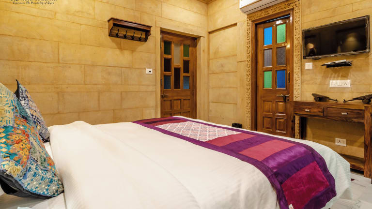 Das Gaji Hotel Jaisalmer in Jaisalmer, Rajasthan, ist eine charmante Unterkunft in der Nähe der Festung Jaisalmer. Mit einer Sonnenterrasse und einem Restaurant vor Ort bietet das Hotel eine entspannte Atmosphäre und einen atemberaubenden Blick auf die Berge. Kostenloses WLAN und kostenlose Parkplätze stehen zur Verfügung. Die Zimmer sind gemütlich eingerichtet und verfügen über Annehmlichkeiten wie einen TV und ein eigenes Badezimmer. Das Hotel bietet auch eine 24-Stunden-Rezeption und Leihfahrräder für die Erkundung der Umgebung.