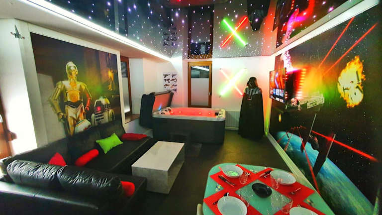 Die Unterkunft GALAXY SPA-4 Pers-Jacuzzi-Insolite-Parking-Jardin-Clim-Colmar bietet Gartenblick und verfügt über eine Terrasse sowie eine Veranda/Patiobereich. Die Übernachtungsmöglichkeiten umfassen eine voll ausgestattete Ferienwohnung mit einem Schlafzimmer, einem Wohnzimmer und einem Badezimmer.