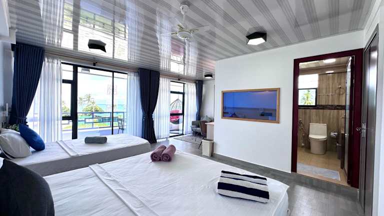 Das Galaxy Sunrise Sea View Hotel in Fulidhoo bietet seinen Gästen einen angenehmen Aufenthalt mit einem schönen Garten, einer gemütlichen Lounge und einer Terrasse. Das Restaurant verwöhnt die Gäste mit köstlichen Speisen und der Zimmerservice sorgt für zusätzlichen Komfort. Die freundlichen Mitarbeiter an der 24-Stunden-Rezeption stehen Ihnen jederzeit zur Verfügung. Die Zimmer sind komfortabel und verfügen über ein eigenes Bad. Einige Zimmer haben einen Balkon und bieten einen herrlichen Meerblick. Beginnen Sie Ihren Tag mit einem leckeren Frühstück, das eine Auswahl an kontinentalen, amerikanischen und asiatischen Gerichten bietet. In und um Fulidhoo können Sie viele Aktivitäten wie Schnorcheln genießen und die wunderschöne Unterwasserwelt erkunden.