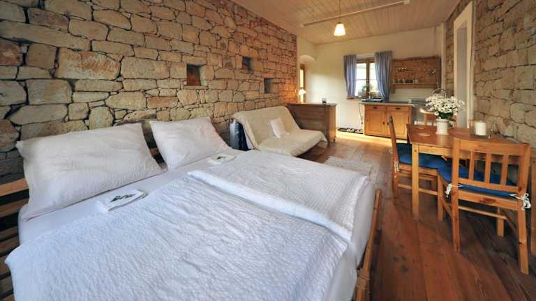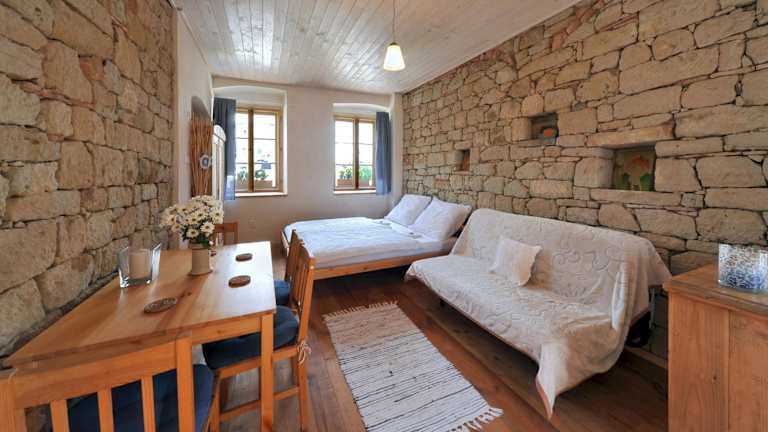 Das Hotel Galerie Kuks in Kuks bietet Ihnen einen angenehmen Aufenthalt inmitten einer malerischen Umgebung. Genießen Sie den Garten, die Terrasse und den kostenfreien WLAN-Zugang mit Blick auf die Berge. Kostenlose Privatparkplätze stehen Ihnen zur Verfügung. Die Umgebung bietet zahlreiche Freizeitaktivitäten wie Wandern, Skifahren und Radfahren. Die Unterkunft ist mit einer Küchenzeile ausgestattet, die einen Kühlschrank, ein Kochfeld und einen Wasserkocher umfasst. Handtücher und Bettwäsche werden gestellt. Zusätzlich bietet das Hotel eine Skiaufbewahrung und einen Kinderspielplatz. Das Großmutter-Tal liegt nur 19 km entfernt und der Bahnhof Kudowa Zdrój erreichen Sie nach 32 km. Der Flughafen Pardubice ist ebenfalls in einer Entfernung von 55 km erreichbar.