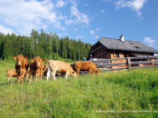 Das Moos unter den Zehen spüren. Pilze suchen. Den Wanderfalken bei der Jagd beobachten. Gemeinsam mit den ersten Sonnenstrahlen aufstehen, um ein Bad im Teich zu nehmen. Holz für den Ofen hacken. Die Aussicht über das nebelverhangene Tal genießen. Unsere Hütte ist der ideale Platz, um eine Pause vom Alltag einzulegen. Auf einer Waldlichtung auf 1600m Seehöhe gelegen, inmitten der Nockberge, lassen sich Erkundungstouren in den Wald unternehmen. Die Hütte ist ausgestattet mit Sauna, Natur-Badeteich, Outdoor-Kitchen, Garage und Holzofen, der bei Bedarf geheizt werden kann. Strom wird umweltfreundlich durch Solarenergie gewonnen, man muss also keineswegs auf Komfort verzichten. Im Stil eines Alpen-Chalets verfügt die Galgenhütte über Satelliten-Fernsehen, mehrere Bade- und Schlafzimmer, geräumige Wohnküche, Garage und Wildkräuter-Garten. Kinder genießen die Nähe zur Natur: Bis in den Herbst grasen Kühe auf der angrenzenden Weide, der Bio-Teich lädt zum Entdecken ein. Wer danach noch immer nicht müde ist, kann sich bei einer Partie Tischtennis auspowern. Einem Urlaubsvergnügen für die ganze Familie steht also nichts im Weg.