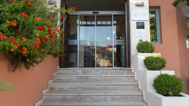 Das Galini Hotel liegt zentral in Skala Eresou und nur 80 m vom Sandstrand entfernt. Die Umgebung bietet Restaurants und kleine Supermärkte, die bequem zu Fuß erreichbar sind. Das Hotel befindet sich auch in der Nähe von Sehenswürdigkeiten wie dem versteinerten Wald von Lesbos und dem Dorf Sigri. Die Hafenstadt Mytilini ist etwa 86 km entfernt.