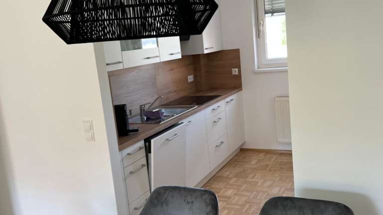 Das Apartment im Gamlitz - RaStra Top 7 verfügt über 2 Schlafzimmer, ein Wohnzimmer, eine voll ausgestattete Küche mit Kühlschrank und Geschirrspüler sowie ein Badezimmer mit Dusche. Handtücher und Bettwäsche werden gestellt. Von der Terrasse aus können Sie den Blick auf die Stadt genießen.