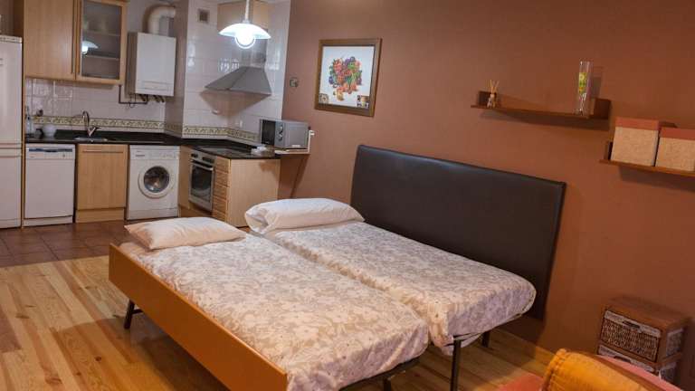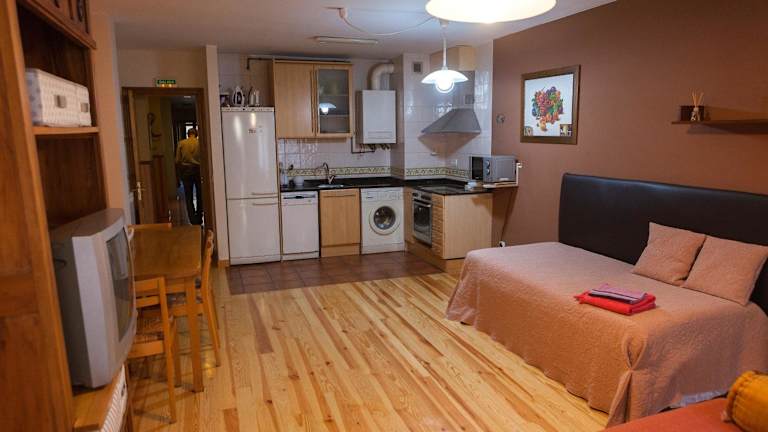 Das Apartment im Ganbara ist geräumig und komfortabel eingerichtet. Mit zwei Schlafzimmern, einem Wohnzimmer und einer gut ausgestatteten Küche bietet es genügend Platz für eine kleine Gruppe oder eine Familie. Der Flachbild-TV und das kostenfreie WLAN sorgen für Unterhaltung und Konnektivität. Handtücher und Bettwäsche werden gestellt, um Ihren Aufenthalt so angenehm wie möglich zu gestalten.