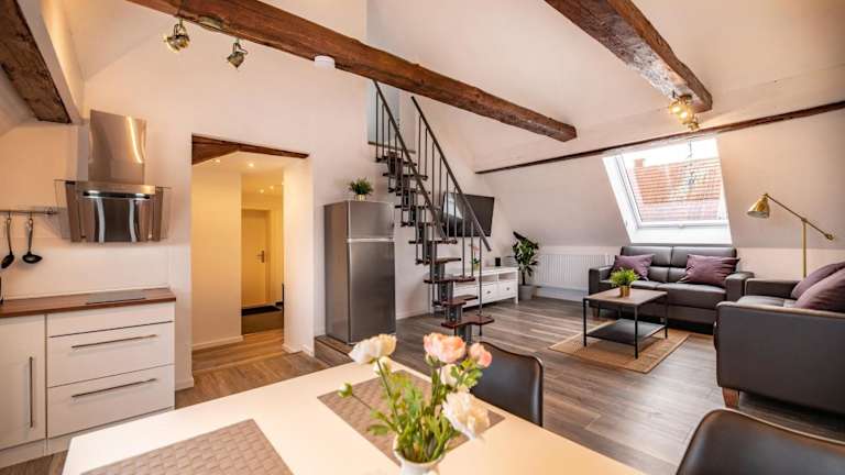 Die Wohnung ist mit einem Sitzbereich, einem Flachbild-TV mit Kabelkanälen, einer Küche, einem Essbereich und einem eigenen Badezimmer ausgestattet. Das Badezimmer verfügt über eine Dusche und einen Haartrockner. Zur Ausstattung gehören zudem Bettwäsche und Handtücher.