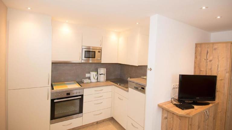 Die Unterkunft verfügt über eine Küchenzeile, die mit einem Kühlschrank, einem Geschirrspüler, einem Ofen, einer Kaffeemaschine und einem Wasserkocher ausgestattet ist.