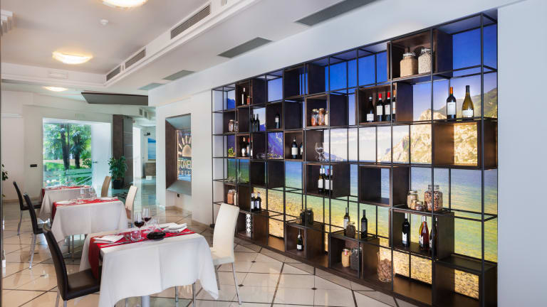 Das Hotel Garda liegt nur wenige Meter vom Strand von Riva del Garda, und nur 800 Meter von der Altstadt entfernt, welche bequem zu Fuß längs der wunderschönen Strandpromenade erreicht werden kann. Es ist der ideale Ort, um Ihre Lust auf Sport, Spaß und Ihr Bedürfnis nach Entspannung zu stillen. Das hotel bietet verschiedene Zimmerkategorien mit Balkon und unsere Suiten bieten auch Seeblick oder einen herrlichen Blick auf die umliegenden Berge. In jedem finden Sie ein raffiniertes und einladendes Dekor. Beginnen Sie den Tag mit dem richtigen Bein! Ein reichhaltiges süßes und herzhaftes Buffet, heiß und kalt mit vielen lokalen Produkten. Eine große Auswahl an Getränken wie Säften, frischen Obst- und Gemüsesäften. Von Gesundheitsbewussten und Sportbegeisterten sehr geschätzt wird unsere “Vital-Ecke”, ideal für diejenigen, die ein energiegeladenes und ausgewogenes Frühstück lieben. Unser Restaurant “La Rosa dei Venti”, lokale Produkte, Seefisch, typischer Käse und saisonale Gemüse sind die Hauptdarsteller unserer Tafel, mit besonderem Augenmerk auf die hervorragende Speise des Gardasees. Grundlage vieler Rezepte ist das wertvolle Extra Vergine Olivenöl D.O.P. des Garda von unserer Familie produziert. Mediterrane Küche mit frischen und traditionellen Gerichten. Wir sind aufmerksam auf den Geschmack und die Bedürfnisse aller unserer Gäste mit Vorschlägen für Kinder, Vegetarier, Zöliakiekranke und andere Nahrungsmittelunverträglichkeiten. Ein Sprung in die Entspannung,ein schöner Außenpool mit Whirlpool, umgeben von immergrünen Pflanzen. Sonnenliegen, Sonnenschirme und Badetücher stehen hier bereit. Die Garda Bar ist eine moderne Umgebung, in der Sie teilweise den Tag verbringen können indem Sie Drinks genießen, guter Musik zu hören oder ein Sportereignis im Sky-Programm verfolgen. In der warmen Jahreszeit n der Nähe des Schwimmbades finden Sie Tische und Stühle mit Bar Service und ausgezeichneter Live-Musik. Jeden Tag von 17:00 bis 18:00 Uhr erwärmt sich die Atmosphäre der Bar während der Happy Hour! Ihr aktiver Urlaub, unsere Personal Trainerin wird Sie in den Sommer Monaten durch völlig kostenlose Aktivitäten führen, an welchen Sie während Ihres Aufenthalts teilnehmen können: Wandern, Yoga und Stretching und Dank der großen Anfrage nun auch geführte Spaziergänge und Acquagym!. Videoüberwachter Abstellraum für Fahrräder und Sportgeräte und kostenloser Parkplatz.