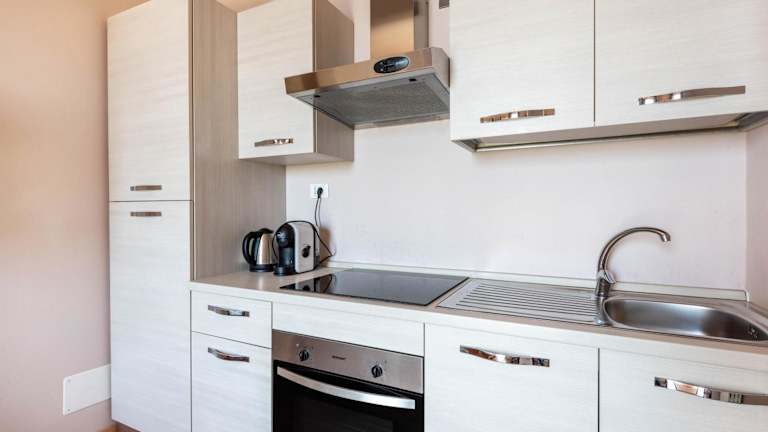 Die Küchenzeile der Unterkunft ist mit einem Kühlschrank, einem Ofen und einer Herdplatte ausgestattet. Keine Informationen zu weiteren Verpflegungsmöglichkeiten vorhanden.