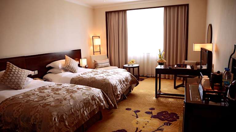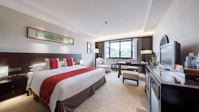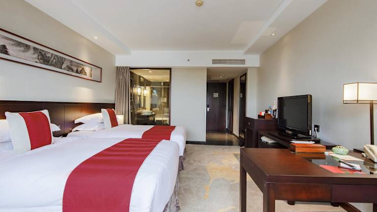 Die klimatisierten Zimmer im Garden Hotel Suzhou sind geräumig und stilvoll eingerichtet. Jedes Zimmer ist schallisoliert und verfügt über Teppichboden. Zur Ausstattung gehören ein Bügeleisen/-brett, eine Minibar, ein Kühlschrank und ein Flachbild-Kabel-TV. Im eigenen Bad finden Sie einen Haartrockner, eine Dusche und Hausschuhe.