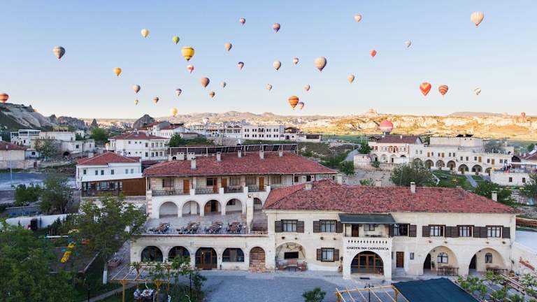 Das Garden Inn Cappadocia in Göreme bietet eine ideale Unterkunft für Reisende, die die Schönheit von Cappadocia erkunden möchten. Mit einem freundlichen und zuvorkommenden Service, komfortablen Zimmern und einer Vielzahl von Annehmlichkeiten wie einem Restaurant, einem Fahrradverleih und einem Kinderspielplatz ist das Hotel der perfekte Ausgangspunkt für Ihren Aufenthalt. Genießen Sie die Nähe zu Sehenswürdigkeiten wie dem Freilichtmuseum Zelve und der Burg Uchisar und lassen Sie sich von der atemberaubenden Landschaft verzaubern.