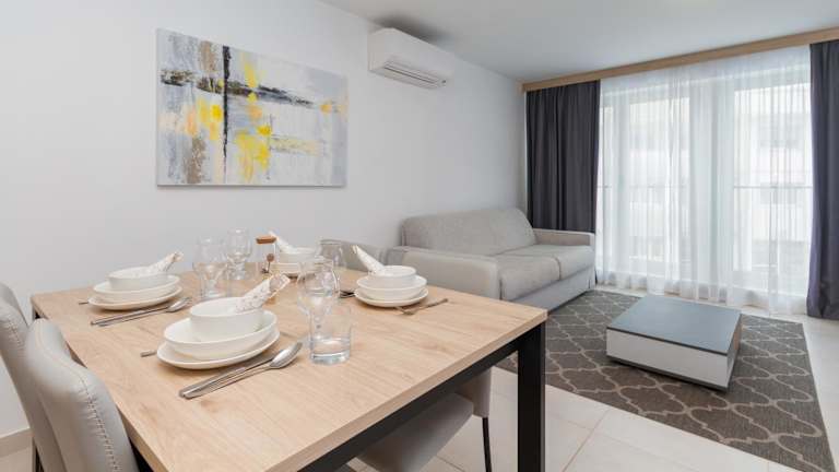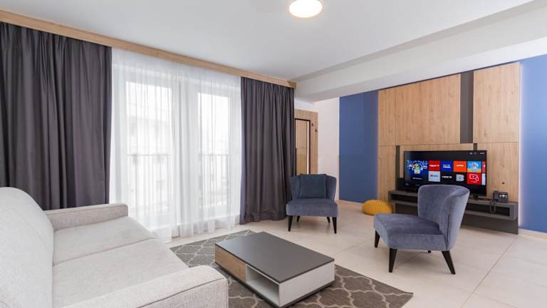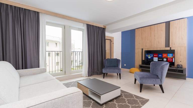 Garden Palace Apartment Sofia bietet einen saisonalen Außenpool, eine Bar sowie einen Conciergeservice. Die Ferienwohnung ist klimatisiert und beinhaltet ein Schlafzimmer, ein Wohnzimmer und eine voll ausgestattete Küche.
