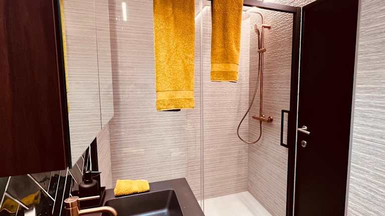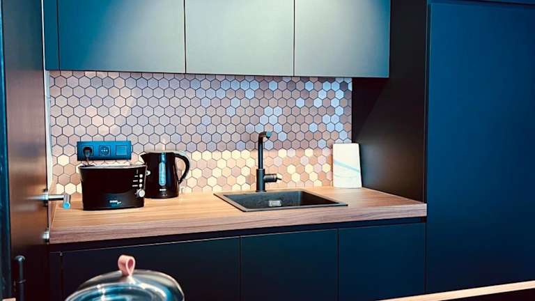 Die Ferienwohnung verfügt über zwei Schlafzimmer, ein Wohnzimmer, eine voll ausgestattete Küche mit Kühlschrank und Wasserkocher sowie ein Badezimmer mit Dusche und Haartrockner. Handtücher und Bettwäsche werden bereitgestellt.