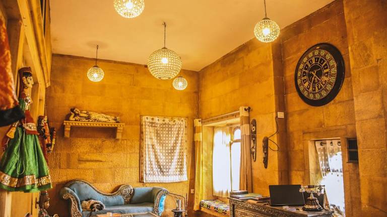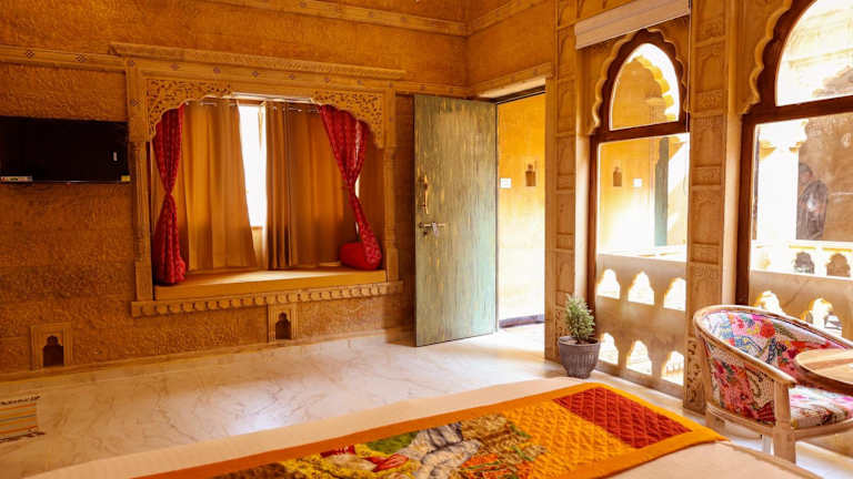 Das Garh Meera - A Sensational Boutique Hotel ist ein einzigartiges Hotel in Jaisalmer, das nur 1,2 km von der beeindruckenden Festung Jaisalmer entfernt liegt. Hier erwartet Sie eine erstklassige Unterkunft mit komfortablen Zimmern, einem Restaurant, einem schönen Garten, einer Terrasse und einer gemütlichen Bar. Kostenloses WLAN steht Ihnen ebenfalls zur Verfügung. Beginnen Sie Ihren Tag mit einem köstlichen kontinentalen, asiatischen oder vegetarischen Frühstück und erkunden Sie die beliebten Sehenswürdigkeiten in der Nähe, wie die Patwon Ki Haveli, die Salim Singh Ki Haveli und den Gadisar See.