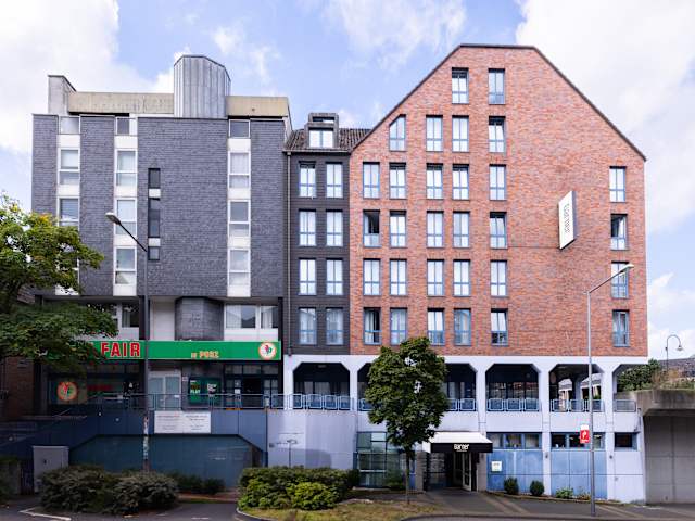 Das Garner Hotel Cologne Porz Airport liegt direkt am Rhein und bietet eine idyllische Lage in Köln. Von hier aus können Sie die schöne Rheinpromenade erkunden und die Aussicht auf den Fluss genießen. Die Bahnhöfe Porz Markt und Porz Rhein sind nur wenige Gehminuten entfernt und bieten eine einfache Anbindung an die Messe Köln. Der Flughafen Köln-Bonn ist ebenfalls in kurzer Entfernung.