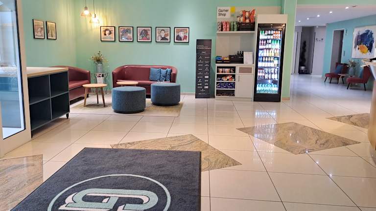Der Garner Shop in der Hotellobby ist rund um die Uhr für Sie geöffnet und bietet eine vielfältige Auswahl an Snacks und Getränken. Ob ein kleiner Imbiss oder ein erfrischendes Getränk – hier werden Sie jederzeit fündig. Perfekt für den Genuss zwischendurch! Direkt vor dem Hotel stehen 68 Parkplätze zur Verfügung, darunter ein barrierefreier Stellplatz. Der Parkplatz ist für Busse und Lkw geeignet. Die Parkgebühr beträgt 4 € pro Nacht und ist direkt an der Rezeption zu entrichten.