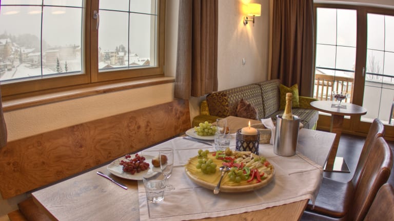 Das AlpinApart Bacher bietet verschiedene Möglichkeiten zur Verpflegung. Gäste können entweder im Apartment frühstücken oder den Lieferservice für frische Brötchen nutzen. Eine stilvolle Loungebar lädt zum Verweilen und Genießen ein.