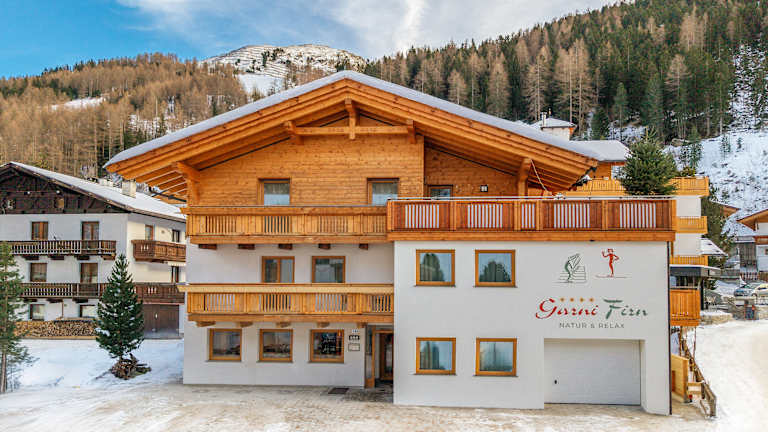 Das Garni Firn Natur & Relax befindet sich im Bergdorf Pfelders, inmitten des Naturparks Texelgruppe im Passeiertal, Südtirol.