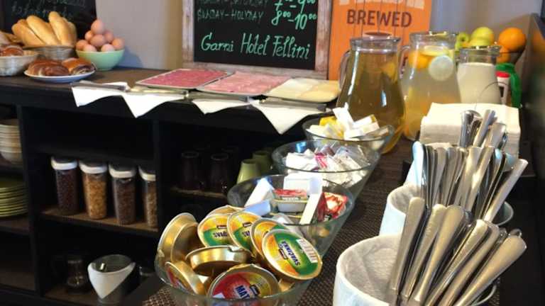 Im Garni HOTEL Fellini können Sie ein kontinentales Frühstück genießen, das Ihnen einen guten Start in den Tag ermöglicht.