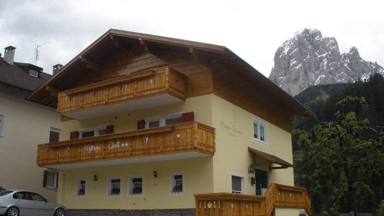 Erleben Sie im Hotel Garni Ossi in St. Christina in Gröden einen komfortablen Aufenthalt mit herrlichem Bergblick von der Sonnenterrasse aus. Die Unterkunft bietet kostenfreies WLAN, Skiaufbewahrung und gemütliche Zimmer mit modernen Annehmlichkeiten. Genießen Sie ein reichhaltiges Frühstücksbuffet und profitieren Sie im Sommer von kostenlosen Tickets für den öffentlichen Nahverkehr. Bozen ist nur 40 km entfernt und kostenfreie Privatparkplätze stehen zur Verfügung.