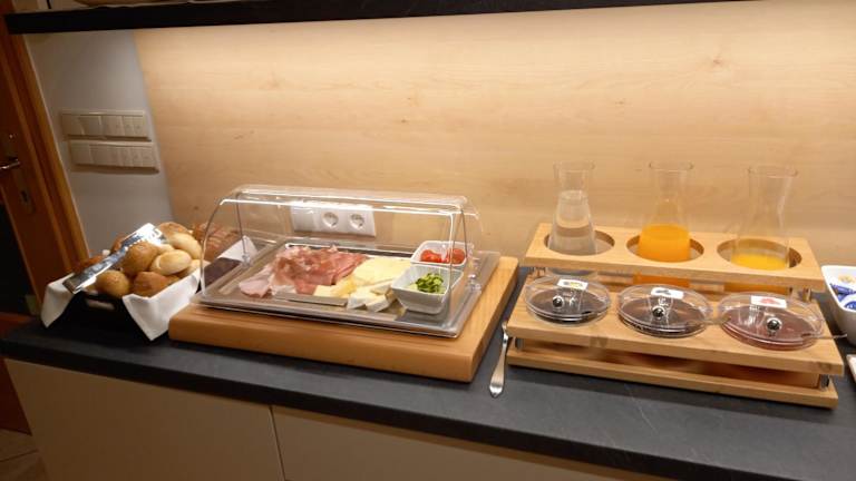 Starten Sie Ihren Tag mit einem köstlichen Frühstücksbuffet im Garni Sonnegg. Das Buffet bietet eine Vielzahl von hausgemachten Produkten wie Kuchen und Marmeladen sowie frisch zubereitete Eier. Genießen Sie die entspannte Atmosphäre und lassen Sie sich verwöhnen, während Sie den Tag planen.