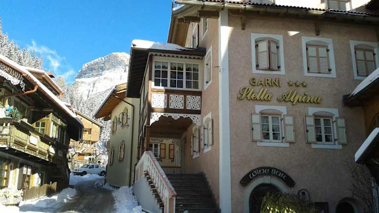 Das Garnì Stella Alpina befindet sich in der verkehrsberuhigten Zone von Canazei, nur 300 Meter von der Seilbahn Belvedere entfernt.