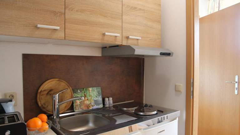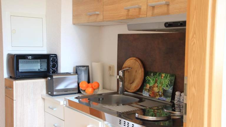 Die Ferienwohnung umfasst ein Schlafzimmer, ein Wohnzimmer und eine voll ausgestattete Küchenzeile mit Kühlschrank und Kaffeemaschine. Das Badezimmer ist mit einer Dusche und einem Haartrockner ausgestattet. Handtücher und Bettwäsche werden bereitgestellt. Die Unterkunft ist eine Nichtraucherunterkunft und es sind Familienzimmer vorhanden.
