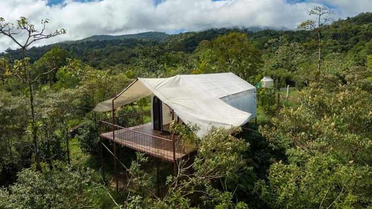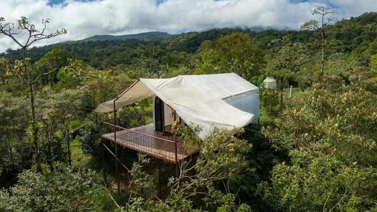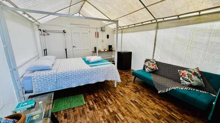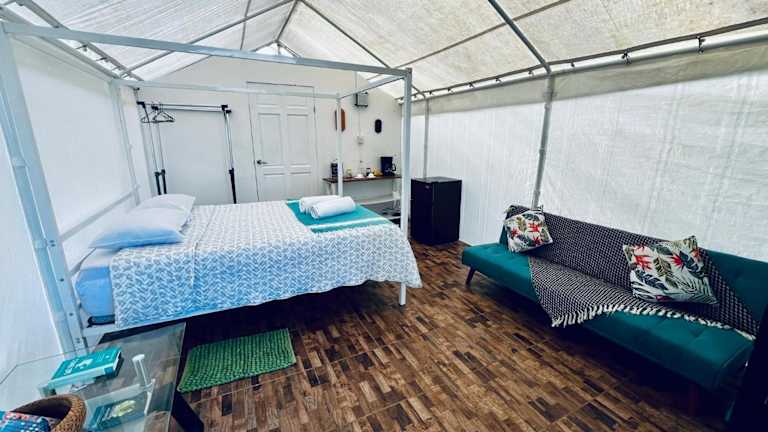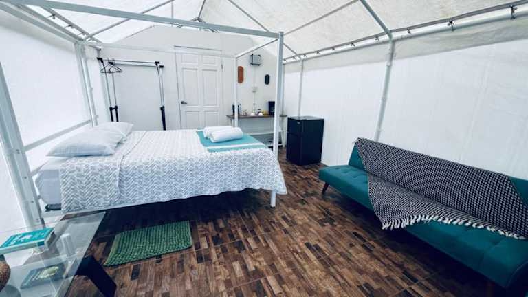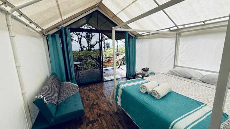 Das Garza del Sol Glamping Río Celeste Buganvilia ist eine einzigartige Unterkunft in San Rafael, die Ihnen einen erholsamen Aufenthalt inmitten der Natur bietet. Mit einem schönen Garten, einer Terrasse und kostenfreiem WLAN können Sie hier die Ruhe und den Bergblick genießen. Das luxuriöse Zelt ist gut ausgestattet und bietet ein kontinentales oder vegetarisches Frühstück. Die Lage in der Nähe des Wasserfalls Rio Celeste macht diese Unterkunft zu einem idealen Ausgangspunkt für Naturerlebnisse.