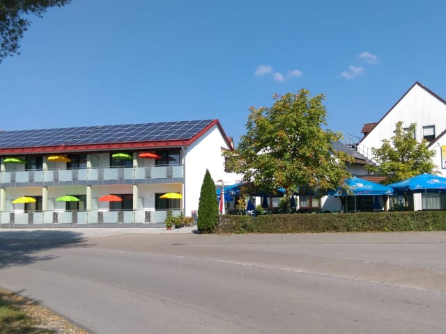 Das Gasthaus Pension Rezatgrund in Windsbach ist eine charmante Unterkunft, die ihren Gästen einen angenehmen Aufenthalt bietet. Mit einem Restaurant und Biergarten, kostenfreiem WLAN und Zugang zum Pool nebenan (Freibad) bietet das Hotel eine Vielzahl von Annehmlichkeiten. Die Zimmer sind komfortabel eingerichtet und verfügen über einen TV mit Sky-Kanälen sowie ein eigenes Bad. Das Hotel wird umweltfreundlich betrieben und verfügt über eine Terrasse und einen Kinderspielplatz im Freien. Außerdem stehen 6 Ladeboxen für Elektroautos zur Verfügung. In der Umgebung können Sie Aktivitäten wie Radfahren genießen und ein Fahrradraum ist ebenfalls vorhanden. Kostenfreie Parkplätze stehen zur Verfügung und der Flughafen Nürnberg ist nur 33 km entfernt.