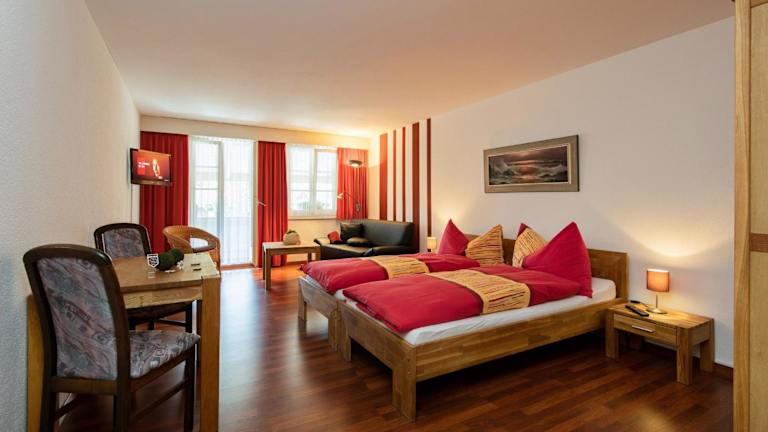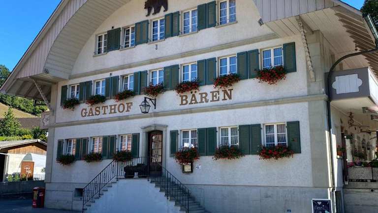Das Hotel Garni Bären Rüegsau liegt im unteren Emmental und bietet eine idyllische Lage inmitten der malerischen Landschaft. In der Umgebung gibt es zahlreiche typische Schweizer Käsereien, die einen Besuch wert sind. Der Bahnhof Hasle-Rüegsau ist nur 25 Gehminuten vom Hotel entfernt, so dass Sie bequem die Region erkunden können.
