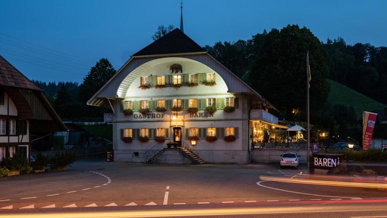 Das Hotel Garni Bären Rüegsau im unteren Emmental ist der ideale Ort für einen entspannten Aufenthalt. Genießen Sie die herzliche Atmosphäre, das hauseigene Restaurant und die Terrasse. Die Zimmer sind komfortabel eingerichtet und bieten einen wunderschönen Ausblick auf die malerische Landschaft. Besuchen Sie auch die typischen Schweizer Käsereien in Rüegsau und erkunden Sie die Umgebung. Kostenlose Parkplätze stehen zur Verfügung und der Bahnhof Hasle-Rüegsau ist in nur 25 Gehminuten erreichbar.