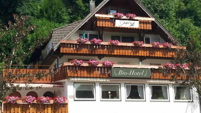Das Decker's Bio Hotel zum Lamm in Baiersbronn bietet eine komfortable Unterkunft mit kostenfreien Fahrrädern, Privatparkplätzen und einem freundlichen Service. Das Hotel zeichnet sich durch seine nachhaltige Ausrichtung aus und bietet eine Vielzahl von vegetarischen, veganen und glutenfreien Speisen zum Frühstück. Gäste können sich auf eine entspannte Atmosphäre, einen Kinderspielplatz und Freizeitaktivitäten wie Tischtennis, Wandern und Skifahren freuen.