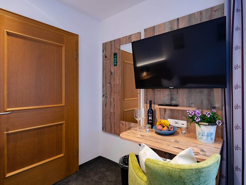 Unsere Standard-Zimmer haben wir 2021 aufwendig saniert und renoviert. Die Fenster sind mit 3-fach verglasten schalldichten Fenstern versehen. Die Möbel sowie die Bäder sind hochwertig mit viel Liebe im Alpenschick ausgestattet.