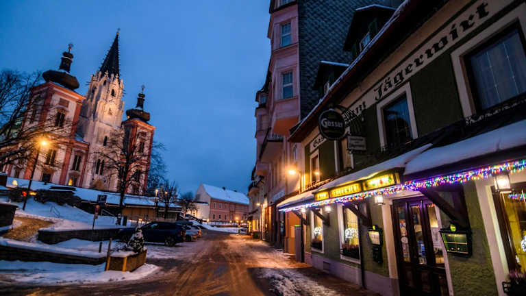 Der Gasthof zum Jägerwirt befindet sich in bester Lage am Hauptplatz von Mariazell. Die Basilika liegt direkt gegenüber und bietet eine beeindruckende Kulisse. Die Umgebung bietet zahlreiche Möglichkeiten für Aktivitäten wie Wandern, Radfahren und Skifahren in den umliegenden Bergen. In unmittelbarer Nähe des Hotels finden Sie Geschäfte, Cafés und Restaurants. Der Parkplatz P3, wo Sie kostenlose Parktickets erhalten, ist nur 8 Gehminuten entfernt.