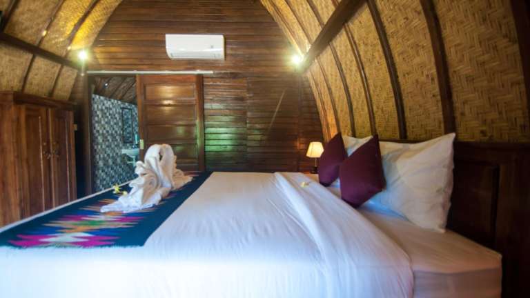 Der GM Bungalow bietet eine Gemeinschaftslounge, in der Sie sich entspannen und mit anderen Gästen ins Gespräch kommen können. Genießen Sie die ruhige Atmosphäre des Gartens und entspannen Sie auf der Terrasse. Die Umgebung bietet auch zahlreiche Möglichkeiten für Outdoor-Aktivitäten wie Wandern und Erkunden der natürlichen Schönheit der Insel.