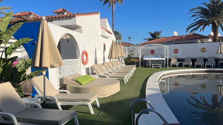 Rainbow Golf Bungalows ist ein GAY (MEN ONLY) Resort im Campo Internacional de Maspalomas. Eine Lärmfreie Umgebung, in dem die ultimative Kombination aus Entspannung und Freizeitaktivitäten im Süden des Inselparadies Gran Canarias, und ihr angenehmes Klima, während des ganzen Jahres genossen werden kann.