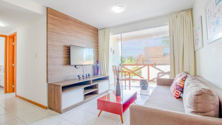 Das klimatisierte Apartment im GB24 Apt 2 Quartos Pé na Areia - Paraíso dos Corais verfügt über 2 separate Schlafzimmer, ein gemütliches Wohnzimmer und eine voll ausgestattete Küche mit Kühlschrank und Backofen. Das Apartment bietet Platz für Familien oder Gruppen von Freunden und ist mit Handtüchern und Bettwäsche ausgestattet.