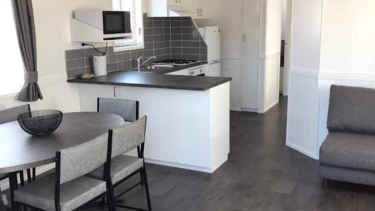 Die klimatisierten Unterkünfte im Geelong Surfcoast Hwy Holiday Park sind komfortabel und bieten alle Annehmlichkeiten für einen angenehmen Aufenthalt. Jede Unterkunft verfügt über eine voll ausgestattete Küche mit einem Essbereich, einen Flachbild-TV und ein eigenes Badezimmer mit Dusche und Haartrockner. Ein Kühlschrank, ein Backofen, eine Mikrowelle und ein Wasserkocher sind ebenfalls vorhanden.