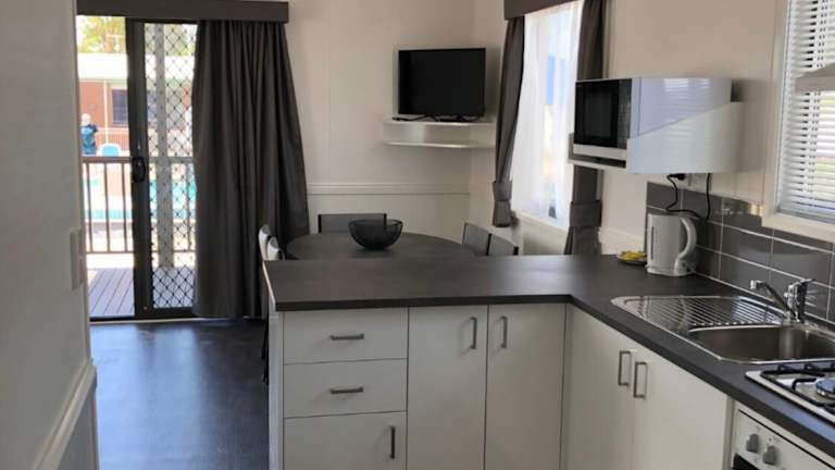 Im Geelong Surfcoast Hwy Holiday Park haben Sie die Möglichkeit, Ihre eigenen Mahlzeiten zuzubereiten, da jede Unterkunft über eine voll ausgestattete Küche verfügt. Es gibt jedoch auch Grillmöglichkeiten im Ferienpark, so dass Sie im Freien grillen können.