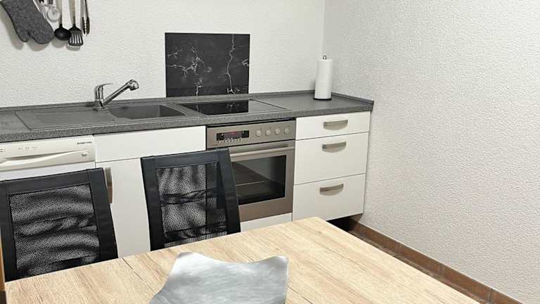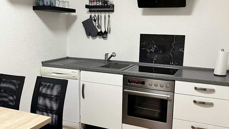 Die Ferienwohnung verfügt über ein separates Schlafzimmer, eine voll ausgestattete Küche mit Kühlschrank und Geschirrspüler sowie ein Badezimmer. Handtücher und Bettwäsche werden bereitgestellt.