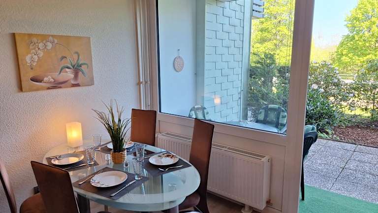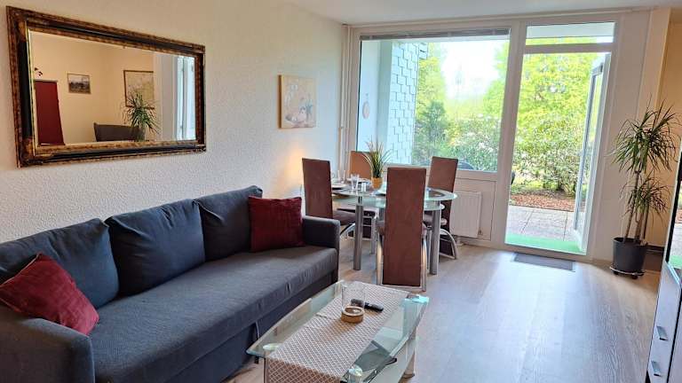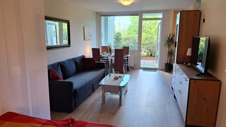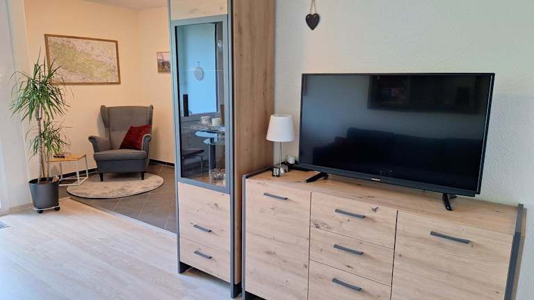 Die Ferienwohnung bietet ein Schlafzimmer, ein Wohnzimmer mit Flachbild-TV, eine gut ausgestattete Küche mit Kühlschrank und Geschirrspüler sowie ein Badezimmer mit Dusche. Handtücher und Bettwäsche werden bereitgestellt.
