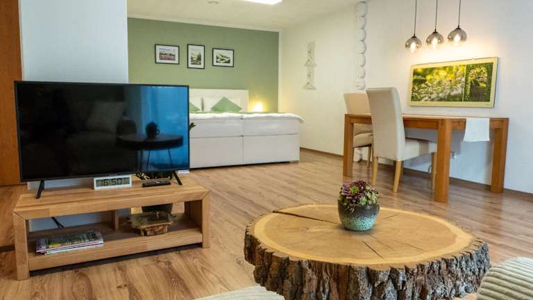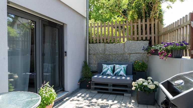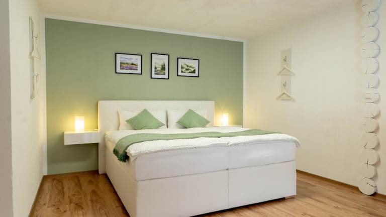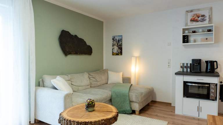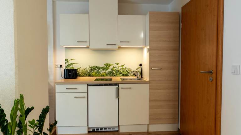 Die Ferienwohnung verfügt über ein Schlafzimmer, ein Wohnzimmer sowie eine voll ausgestattete Küche mit Kühlschrank und Kaffeemaschine. Ein Badezimmer mit Dusche und kostenlosen Pflegeprodukten ist ebenfalls vorhanden. Handtücher und Bettwäsche werden bereitgestellt. Der Gartenbereich bietet Grillmöglichkeiten.