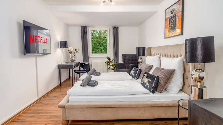 Gemütliche & Individuelle Ferienwohnungen in Krefeld - JUNIK Apartments bietet eine komfortable Unterkunft mit kostenlosem WLAN in allen Bereichen. Die Apartments sind mit einem Sitzbereich ausgestattet und bieten Annehmlichkeiten wie Flachbild-TV, eigene Badezimmer mit Dusche und kostenfreien Pflegeprodukten. Vor Ort gibt es einen Privatparkplatz.